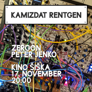 Kamizdat Rentgen: Zergon, Peter Jenko2021 Kino Šiška, Ljubljana, SIvečer modularne sinteze in analognega tehna z dvehma izkušenima umetnikoma elektronske glasbe